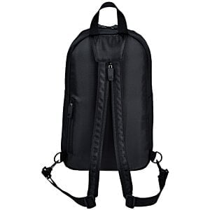 This premium slingpack is the right size for carrying all your essentials. It has a padded tablet sleeve to protect your electronic devices, an easy-reach front zippered pocket, and a secured back zippered pocket. Plus, its convertible straps change the look from a sling to a backpack.